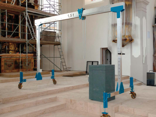Jedná se o dílenský portálový jeřáb s odlehčenou hliníkovou konstrukcí.