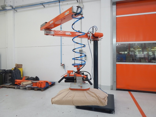 Balancéry pro manipulaci s pytli jsou vybaveny přísavkou nebo pneumatickými kleštěmi.