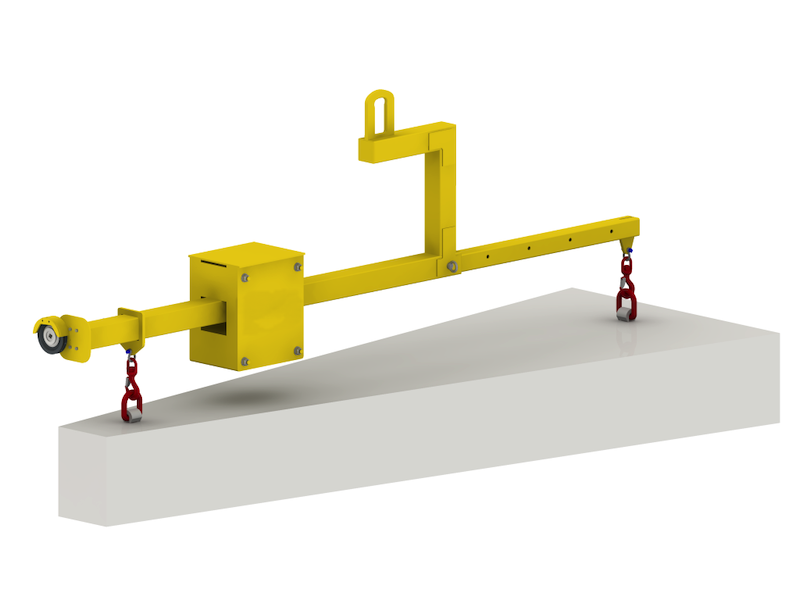 The double-sided suspension is used eg when transporting different types of loads with eccentric load center of gravity. After hanging the load and a slight lifting the operator will move the counterweight to balance the beam to the horizontal position.