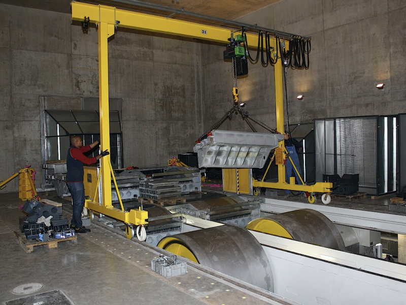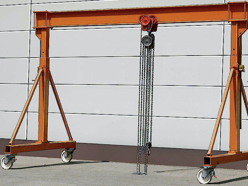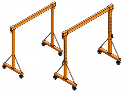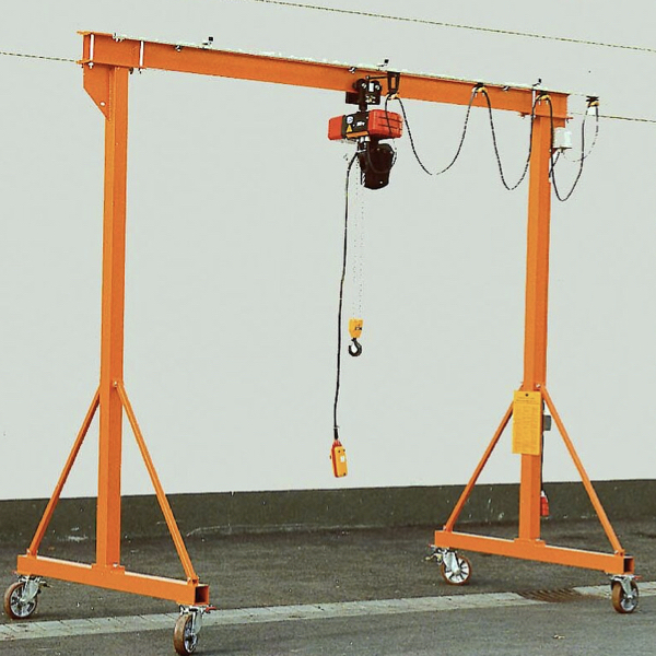 Portálový žeriav, vhodný na použitie v hale aj vo vonkajšom prostredí. Ľahko sa pohybuje na rovnej a pevnej zemi. Svetlú šírku je možné plynulo nastavovať pomocou zverného spojenia medzi podperami a nosníkmi.