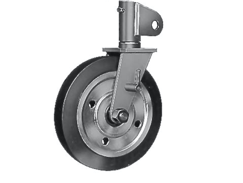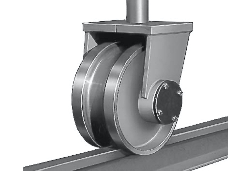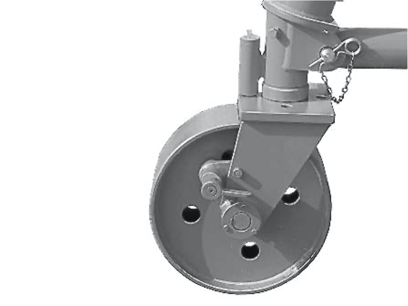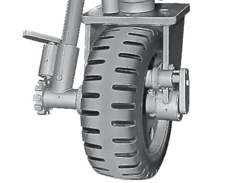 Veľké oceľové kolesá s priemerom cca. 400 mm umožňujú ľahký chod. Pre jednoduchý pohyb žeriava na rovnom a pevnom podklade je možné žeriav vybaviť rohatkovým pohonom pôsobiacim na 2 kolesá. Kolesá je možné upevniť v 90° intervaloch, dve z nich je možné dodatočne zaaretovať.