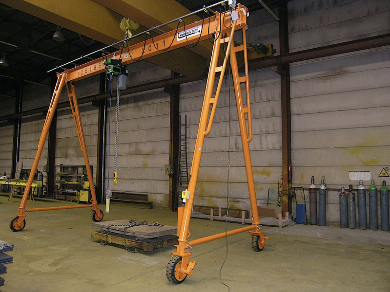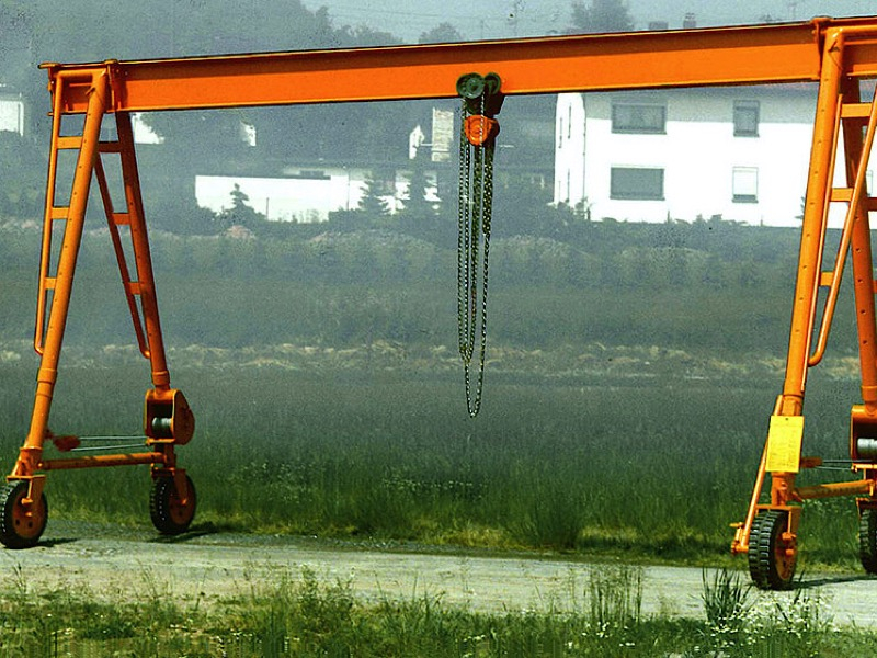 Portálový žeriav s "V" podperami je určený pre vnútorné aj vonkajšie použitie a môže byť vybavený akýmkoľvek ručným alebo elektrickým kladkostrojom. Stabilné V-podpery umožňujú vysokú nosnosť, veľké rozpätie a vysokú konštrukčnú výšku. Zverné spojenie medzi V-podporami a nosníkom umožňuje plynulo nastaviteľné rozpätie. Skrutkované spoje umožňujú jednoduchú a rýchlu montáž žeriava.