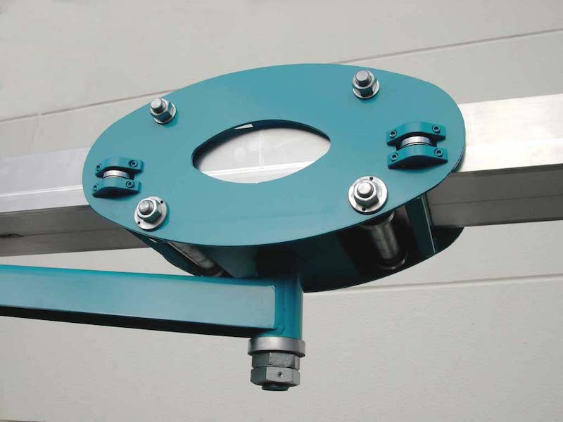 Stacionárny dielenský žeriav J8 sa vyznačuje pojazdným vozíkom s otočným ramenom. Vďaka otočnému ramenu je obsluha schopná obsiahnuť veľký precový priestor.