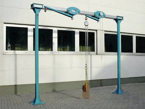 Pri riešení s voľne pojazdným vozíkom obsluha tlakom na bremeno presúva bremeno, vozík voľne pochádza po nosnom profile žeriava.