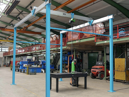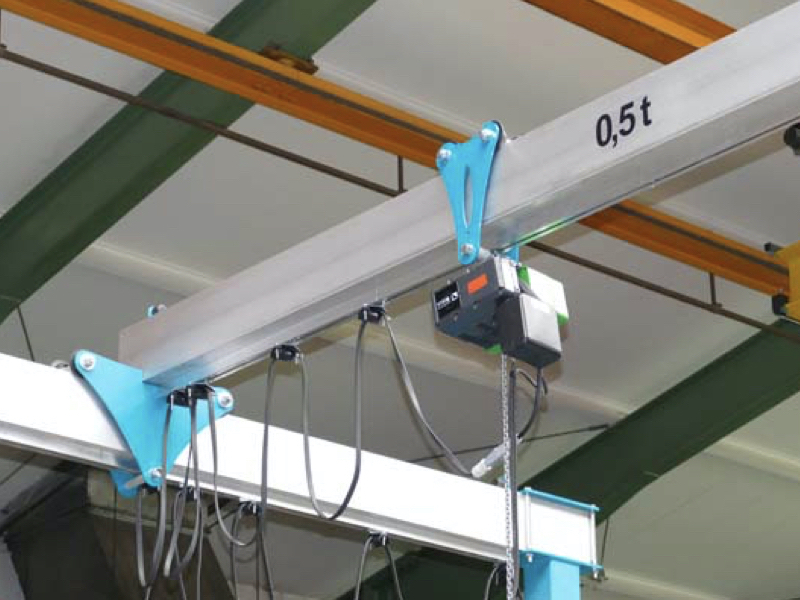 Žeriav je osadený vozíkom s guličkovými ložiskami, ktorý je vhodný ako pre ručné alebo elektrické kladkostroje. Vozík je možné jednoducho presúvať tlačením bremena.