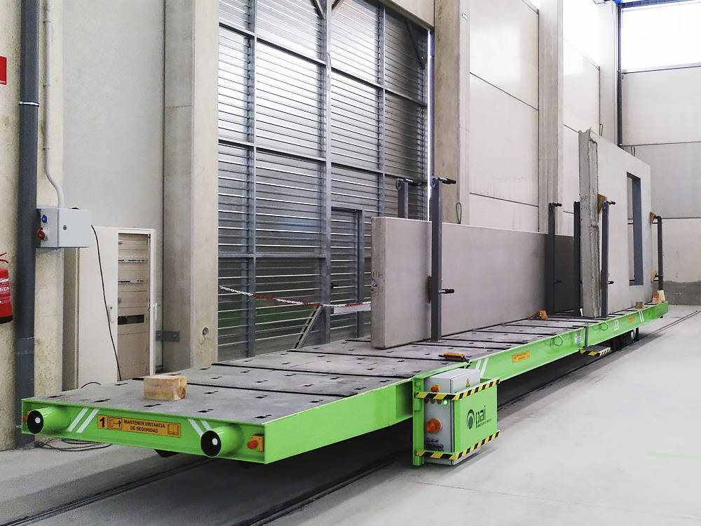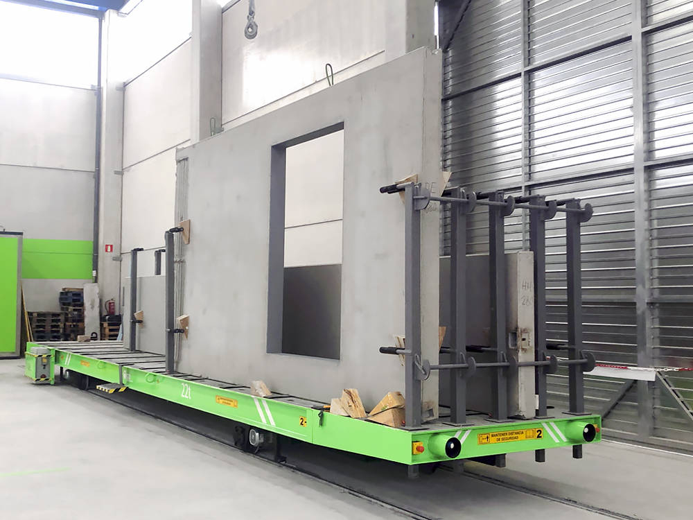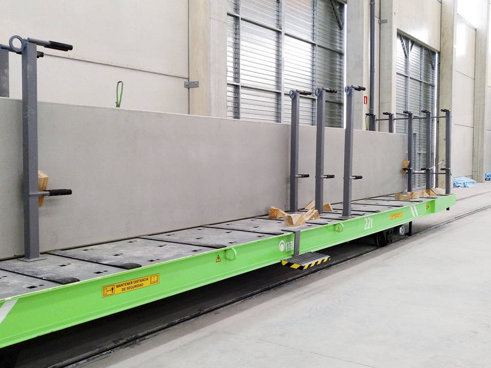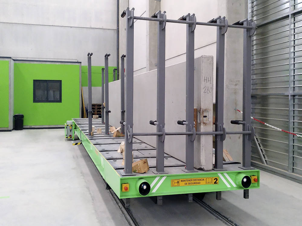 Koľajový manipulačný vozík na prevážanie betónových výrobkov